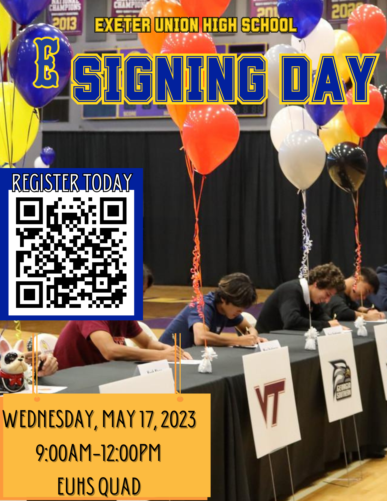 EUHS Signing Day 2023 Deadline is 5-523 We are limited by time Deadline to sign up is April 14th We want parents and family members to attend, Students have until April 14th to sign up. Attached Files Signing Day (1).pdf Print