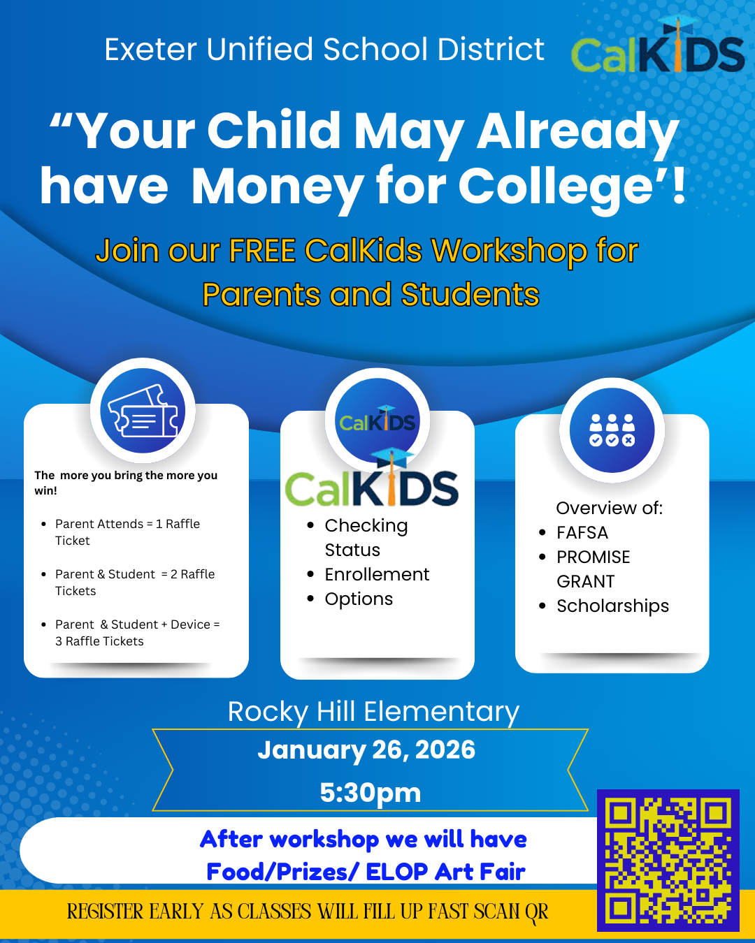 Cal Kids Workshop- Your Child May Already have Money for College!/ Es Posible que su hijo ya tenga dinero para la universidad!